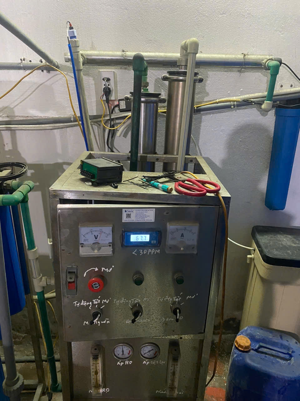 Hôm nay, đội ngũ kỹ thuật của chúng tôi đã thực hiện bảo trì hệ thống lọc nước RO 500L/h và sửa chữa tủ điện điều khiển hệ thống tại nhà khách hàng.