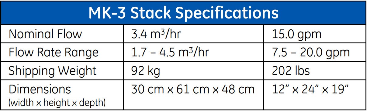 Thông số kỹ thuật của Thiết bị EDI E-Cell MK-3 Stack